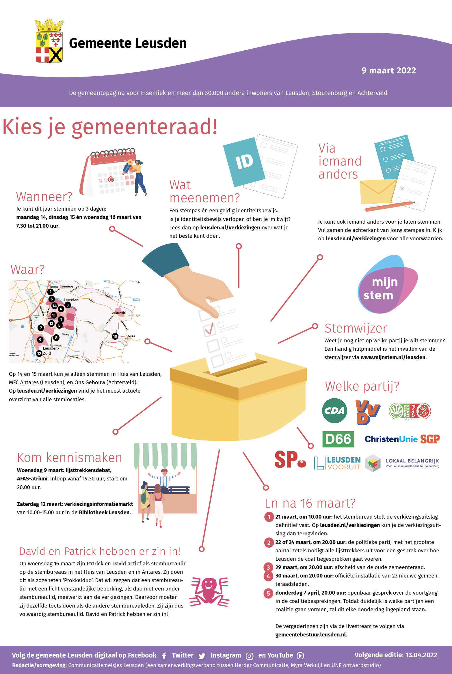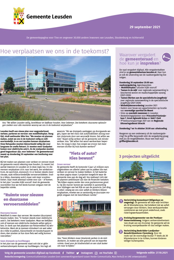 Drie wekelijkse uitgave in de Leusder Krant met informatie van de gemeente en de gemeenteraad van Leusden. Regelmatig met infographics.