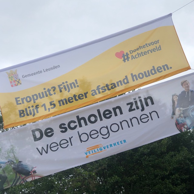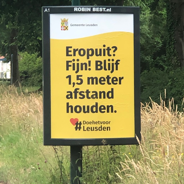 Tijdens de Corona-periode vroeg de gemeente Leusden de Communicatiemeisjes Leusden (een samenwerkingsverband tussen Myra Verkuijl, Crista Herder en Une ontwerpstudio) om mee te denken over een campagne binnen de gemeente om met name de 1,5 meter maatregel te blijven stimuleren. Voor de campagne werd de tekst Eropuit! Fijn! Blijf 1,5 meter afstand houden bedacht met de verschillende # voor de 3 dorpen waar de gemeente Leusden uit bestaat. #doehetvoorLeusden, #doehetvoorStoutenburg en #doehetvoorAchterveld. Met spandoeken, posters langs de weg en advertenties via de socials en infobord van de gemeente werd de campagne zichtbaar.
